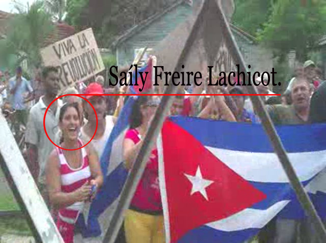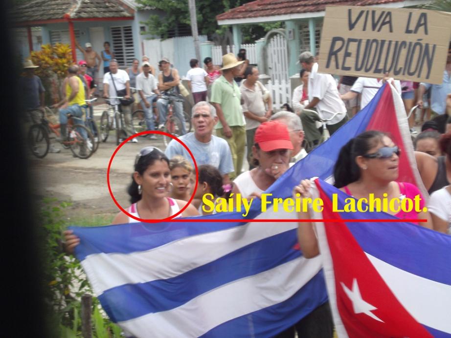 “Saíly Freire Lachicot”, labora como instructora deportiva en el Combinado Deportivo Municipal, en Santa Cruz del Sur, donde junto a su hermana paterna, la también segurosa y paramilitar, “Jenny Freire Rosabal”, conjuntamente a otros reconocidos represores, se encargan de la organización y dirección de los violentos actos de repudio contra las viviendas de los opositores prodemocráticos, así como de las provocaciones verbales y agresiones físicas en la vía pública.