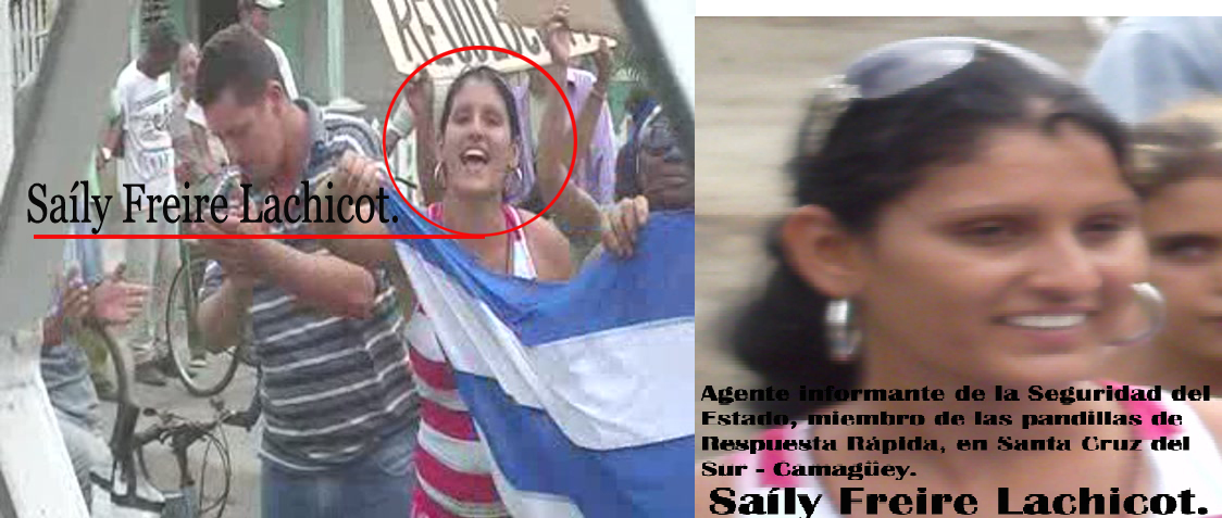 La agente informante de la Seguridad del Estado, “Saíly Freire Lachicot”, miembro activo de las represivas pandillas de Respuesta Rápida en el municipio camagüeyano Santa Cruz del Sur, pretende a discreción, realizar trámites para viajar lo más rápido posible hacia los EEUU. luego de contraer nupcias el pasado 30 de julio de 2012, con el ciudadano cubano, “Leoncio Agüero Pacheco”, residente en ese país.