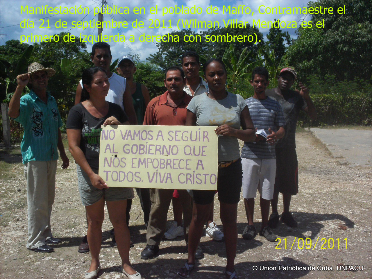Wilman Villar Mendoza falleció el 19 de enero del año 2012, en el hospital Juan Bruno Zayas de Santiago de Cuba, al cabo de más de 50 días en huelga de hambre. Había sido detenido el 14 de noviembre de 2011, cuando participaba en una protesta de la UNPACU en la localidad oriental de Contramaestre, donde residía. Días después se le sometió a un «juicio sumario» por delitos de desacato y atentado a la autoridad, por lo que recibió una condena de cuatro años de prisión.
