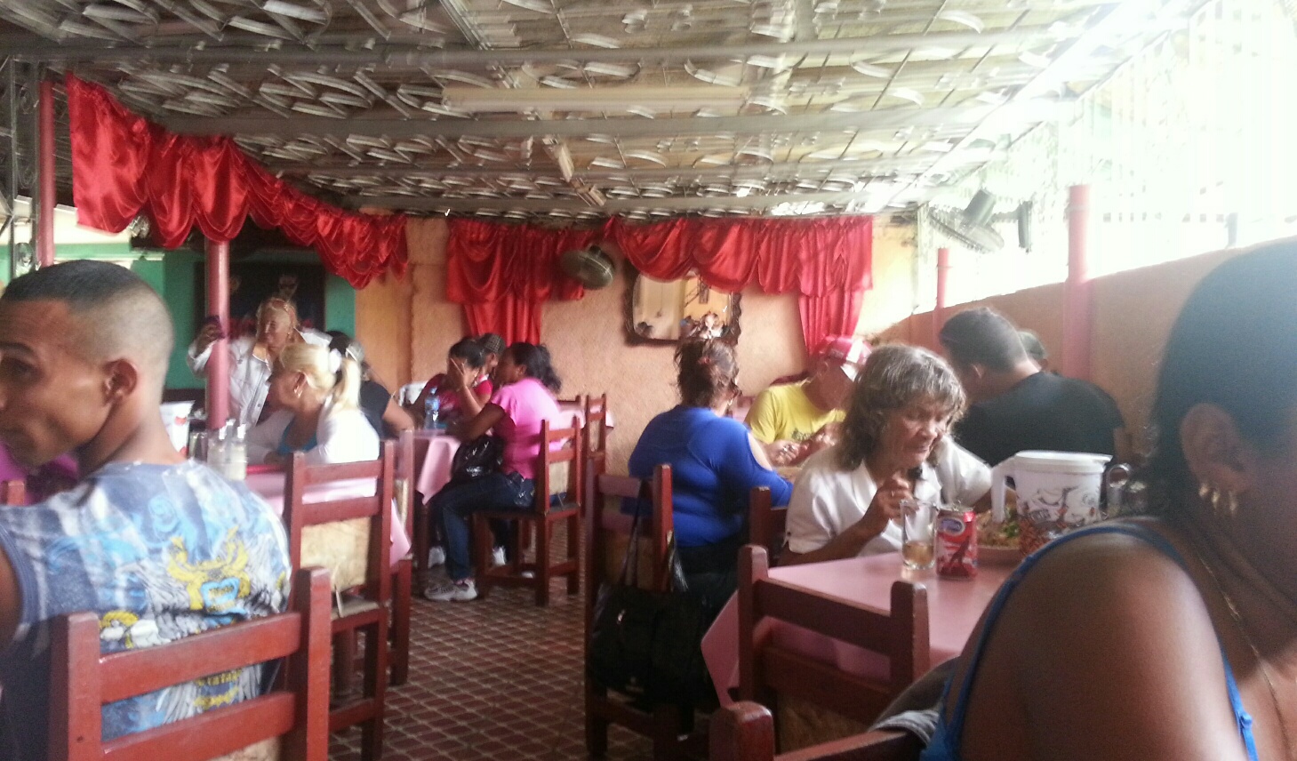 privado a medias El negocio no es privado, es a medias. Así definen dos cubanos a un restaurante en Guáimaro, Camagüey y la calificación viene porque los propietarios tienen que pagar los impuestos al gobierno a un precio elevadísimo. En el caso de esta «Paladar», como le llaman por acá, sus propietarios se benefician de su ubicación geográfica porque está cerca de la carretera central entre Guáimaro y Taguasco por donde pasan los ómnibus que se trasladande una región a otra del país y hacen sus paradas para que los viajeros compren los alimentos mientras los choferes en recompensa por llevar usuarios allí reciben la comida gratis.