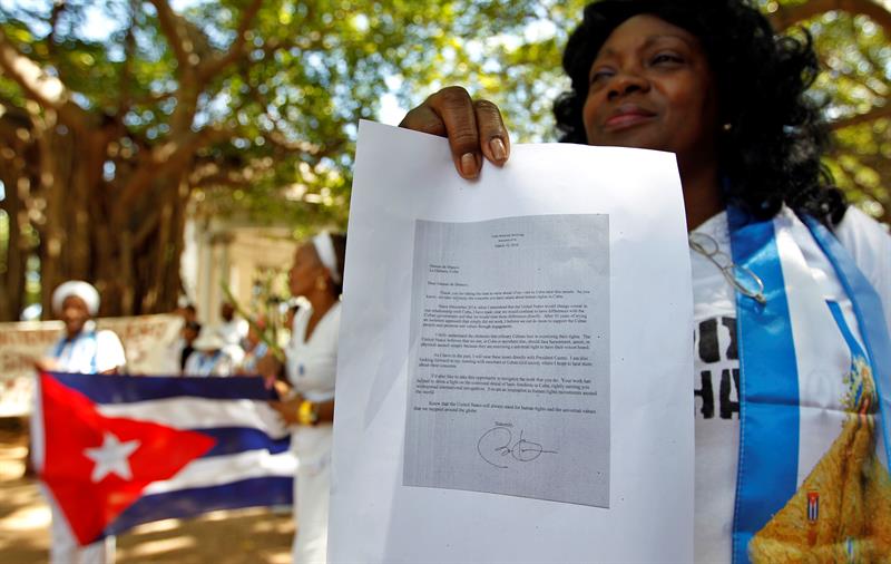 Durante el encuentro, Berta Soler, líder del Movimiento Damas de Blanco, dio lectura a una carta que Obama envió a las integrantes del grupo femenino.