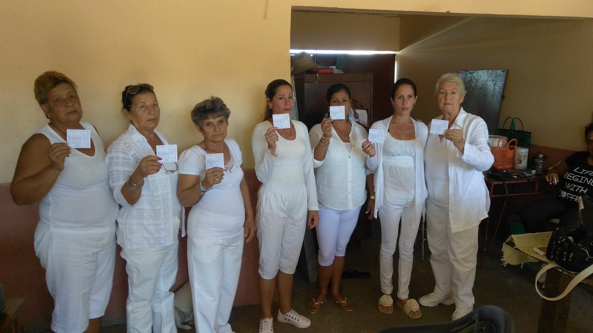Hermanos: «En este Domingo de Ramos fueron multadas con 150.00 CUP (cada una), por intentar participar de la Santa Misa, las Damas de Blanco Maritza Acosta Perdomo, Niala Puentes Batista, Caridad Burunate Gómez, Tania Echevarría Menéndez, María Teresa Castellanos y Mayra García Álvarez, todas del municipio de Colón. A la vez que fueron amenazadas por el oficial de la policía política Alberto Surí con ser procesadas el próximo domingo, si persisten en su afán de ir a la iglesia.