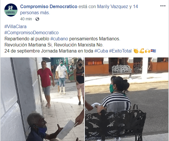 Este 24 de septiembre día de la Virgen de Las Mercedes, integrantes de la Coalición Unitaria “Compromiso Democrático” se dedicaron a tomar todas las calles en Cuba con pensamientos de José Martí.