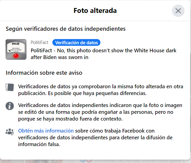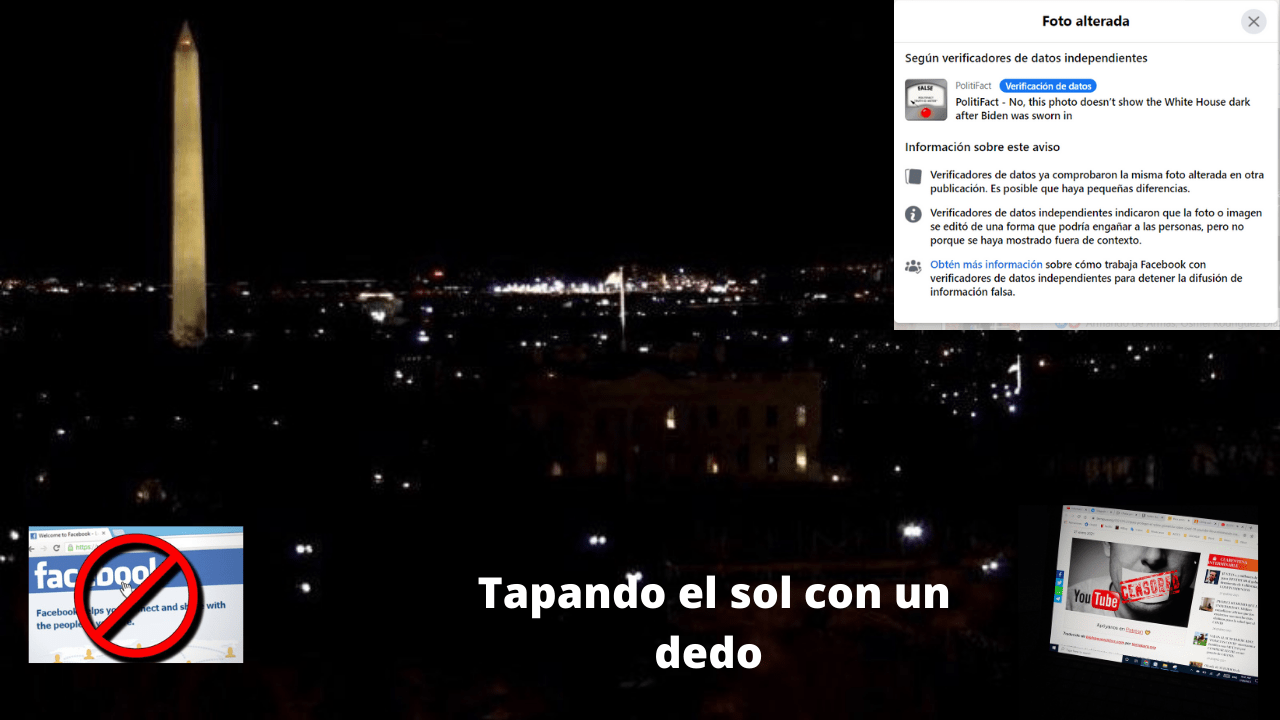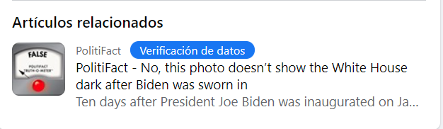 Segun Facebook la foto que yo usé «no muestra la casa oscura despues que Biden fue juramentado».