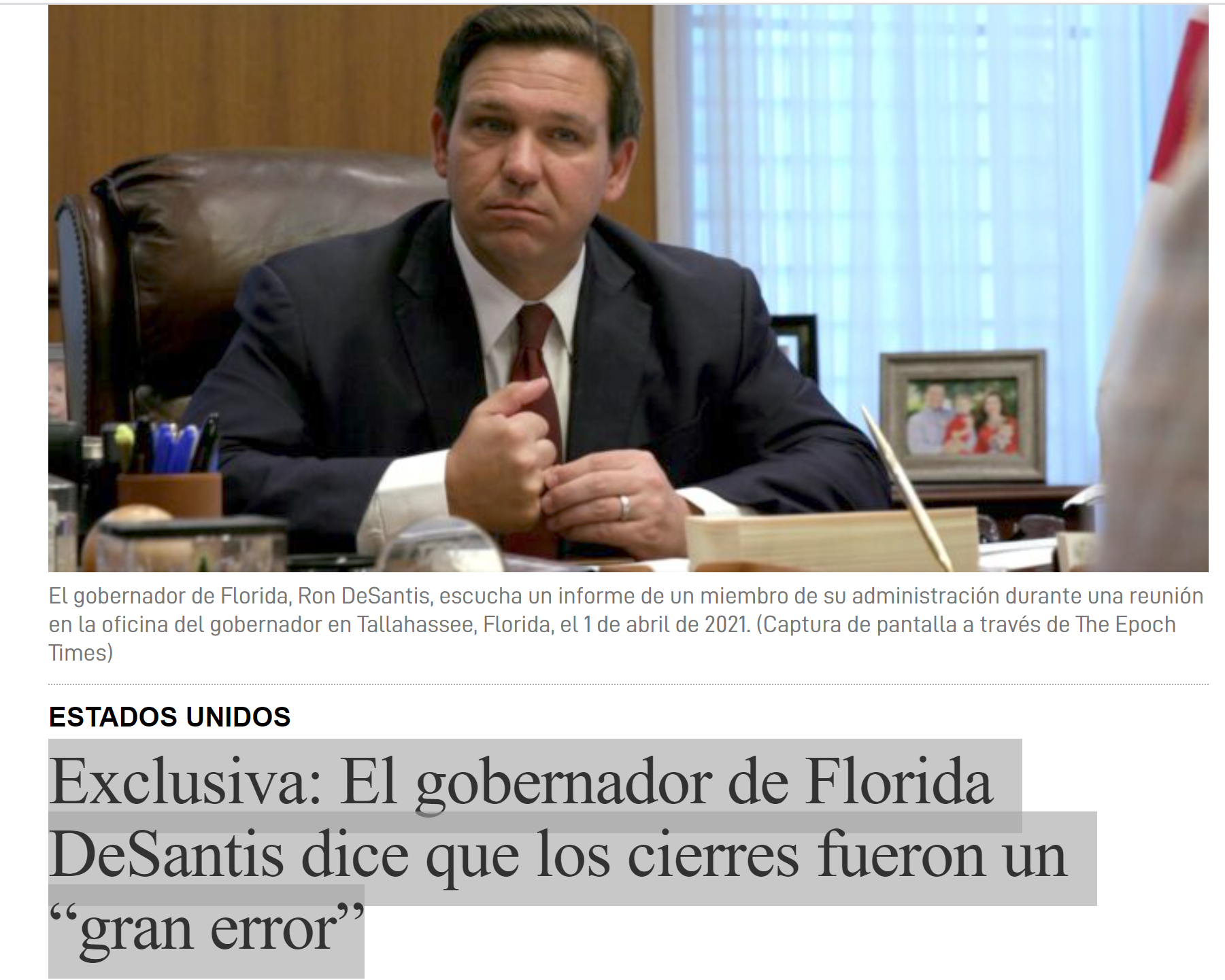 (Exclusiva: El gobernador de Florida DeSantis dice que los cierres fueron un “gran error” Fuente: The Epoch Times en españo