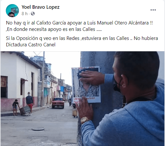 Yoel Bravo Lopez «No hay que ir al Calixto García apoyar a Luis Manuel Otero Alcántara ! En donde necesita apoyo es en las Calles… Si la Oposición que veo en las Redes ,estuviera en las Calles … No hubiera Dictadura Castro Canel».