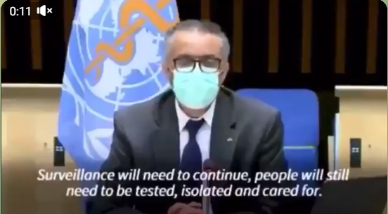 -El covidiota que habla escondido y haciendo el paripé tras una máscara tapándose la cara como un delincuente es el Director General de la Organización Genocida de la Salud (OMS) y dice: «Una vacuna por si sola no acabará con la pLandemia. La vigilancia debe continuar, las personas aún deben ser testeadas, aisladas y tratadas. Los contactos siempre tendrán que ser rastreados y puestos en cuarentena».