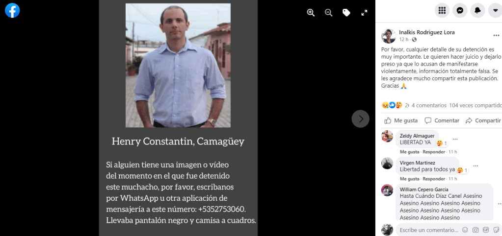 Fue detenido por la policía el pasado 11 de julio cuando decidió salir a manifestarse pacíficamente en las calles camagüeyanas. Estuvo en paradero desconocido toda la tarde noche del domingo y solo se supo de su paradero el lunes en la mañana. A las estaciones policiales que se llamaron para saber de él, contestaron y en ocasiones negaron la información.