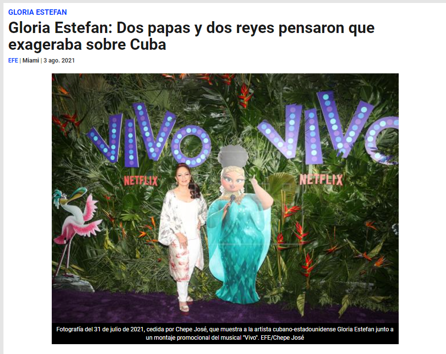 Así lo publicó EFE https://www.efe.com/efe/america/cultura/gloria-estefan-dos-papas-y-reyes-pensaron-que-exageraba-sobre-cuba/20000009-4600652