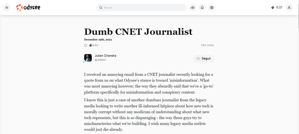 Les comparto: «Periodista tonto de CNET» https://odysee.com/@Odysee:8/dumbcnetjournalist:0Lógico