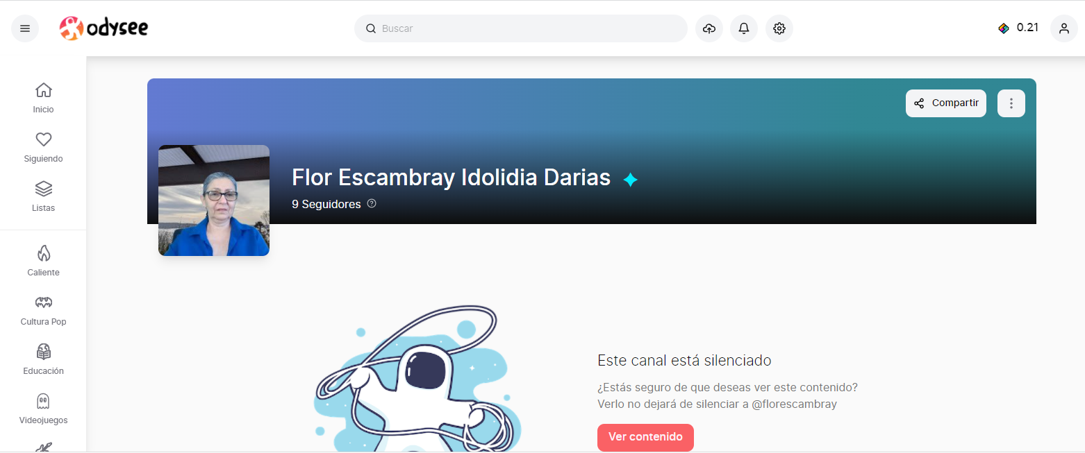 A pesar de saber que sobre mi canal en Odysee hay una alerta de silenciado, cada rato reviso la plataforma para buscar lo que otros exponen allí y ver a quien más han silenciado y me encontré con una sorpresa.