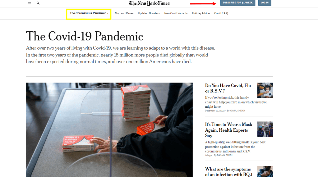 El enlace propuesto por Palacios nos lleva a TheNweYorkTimes que lo primero que te tira delante es una oferta de pagar para poder navegar por el poderoso y hegemónico medio. Y luego te pone frente a tus narices una portada como esta:
