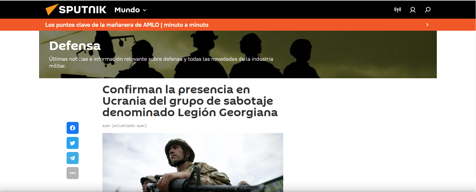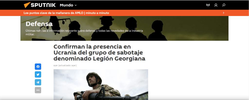 MOSCÚ (Sputnik) — Los miembros del grupo de sabotaje y reconocimiento denominado Legión Nacional Georgiana, que participaron en los combates en (aqui les dejo la captura de pantalla y como a siti no se puede acceder por Google les agrego abajo (cpia -pega) de lo que si pueden leer usando Yandex .