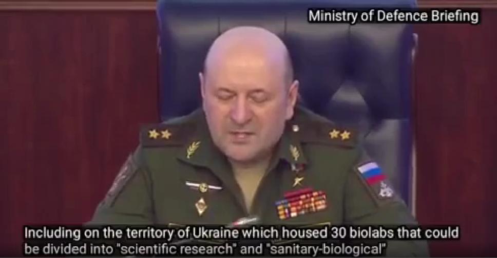 Declaración del ministerio de defensa ruso sobre el programa de armas biológicas en Ucrania. Aqui puede escucharlo (traducido al Español https://odysee.com/Rueda-de-prensa-Defensa-rusia:ca97799363145fd6432fc7c1011db511806f8e37?src=embed