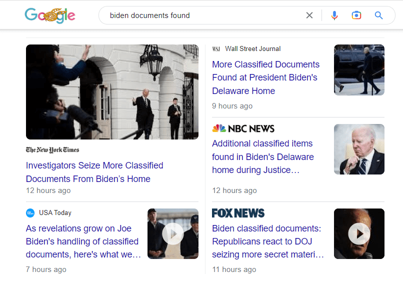 CNBC:UPDATED SAT, JAN 21 20239:40 PM EST–POLITICS-FBI finds more classified documents in search of Biden home in Delaware.