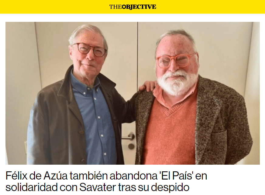 Tras la salida de Savater el escritor Félix de Azúa ha comunicado a la dirección del principal rotativo del grupo Prisa que deja de escribir en sus páginas en solidaridad con Fernando Savater tras ser despedido el pasado 22 de enero por criticar la deriva editorial del periódico, al que llegó a acusar de ser el «portavoz del peor gobierno de la democracia». desde .