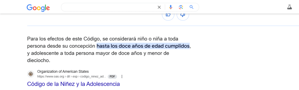 Para los efectos de este Código, se considerará niño o niña a toda persona desde su concepción hasta los doce años de edad cumplidos, y adolescente a toda persona mayor de doce años y menor de dieciocho.