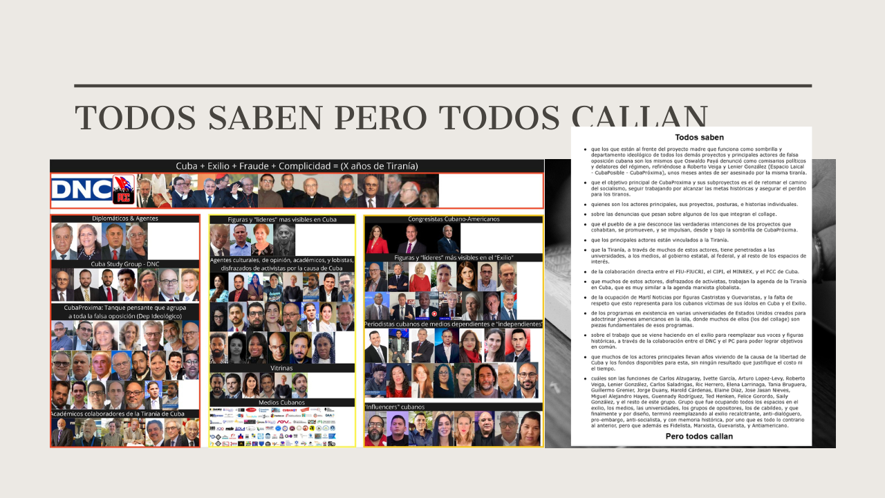 Estos personajes protagonistas de las historias mostradas en X siempre han buscado en sus proyectos hablar con la tiranía de la isla y con los que fuera de Cuba ocupan puestos en el gobierno o han vivido por décadas de los dineros que ese misno gobierno les ha facilitado el dinero y el apoyo -ya sabes ahora mismo tiene nombre propio -USAID-NED- y antes era ongs y organizaciones facilitadoras del proceso).