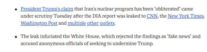 –La afirmación del presidente Trump de que el programa nuclear de Irán ha sido «aniquilado» quedó bajo escrutinio el martes después de que el informe de la DIA se filtrara a: