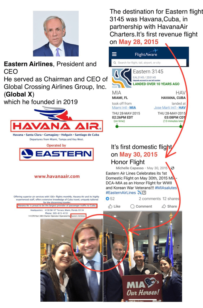 Para colmo, el 28 de mayo de 2015, el primer vuelo comercial de Eastern Airlines fue a La Habana, Cuba. El 30 de mayo de 2015, exactamente dos días después, se realizó un vuelo de Honor desde Miami (MIA) al Aeropuerto Nacional Ronald Reagan de Washington (ida y vuelta). ¿Quiénes asistieron? Veamos.