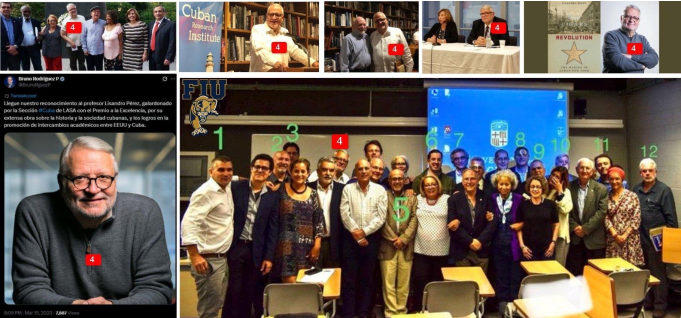 En la imagen, junto a Lisandro Pérez (#4), fundador del Instituto de Investigaciones Cubanas de FIU (Cuban Research Institute) y acusado por el exfuncionario de la Agencia de Inteligencia de Defensa de EE. UU. (DIA) Christopher Simmons de actuar como agente de inteligencia cubano, aparecen varias personas, algunas también confirmadas como agentes cubanos: #1 Julio César Guanche, #2 Guillermo J. Grenier, #3 Elier Ramírez Cañedo, #4 Lisandro Pérez, #5 Rafael Hernández, #6 Michael Bustamante, #7 Alejandro de la Fuente, #8 Arturo López Callejas (primo de Luis Alberto Rodríguez López-Calleja), #9 Omar Everleny Villanueva, #10 Carlos Alzugaray, #11 Paolo Spadoni, #12 Arnold August,
